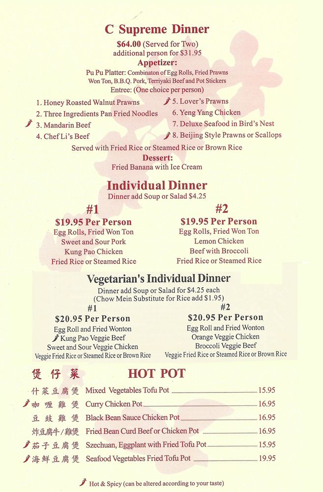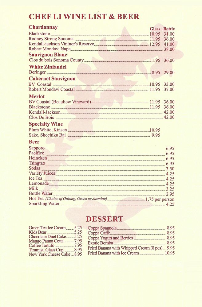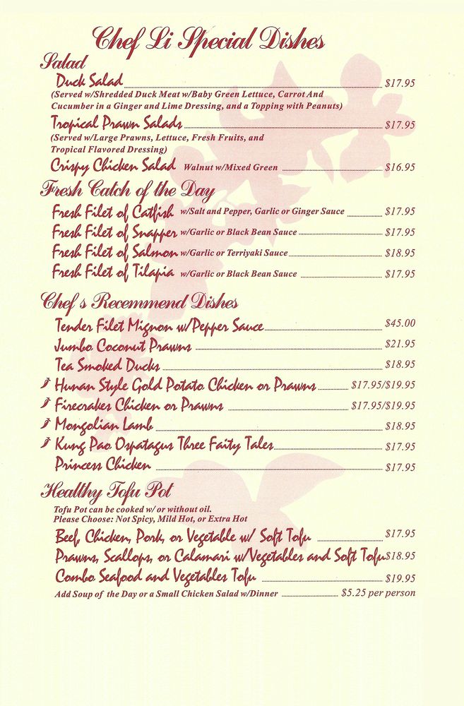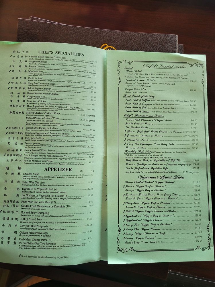 Customers rave about the Honey Walnut Chicken lunch special, Mongolian Beef, Filet Mignon Pepper Steak, and more. The restaurant's attentive service, clean ambiance, and excellent food keep patrons coming back for more. From Kung Pao Chicken to Vegetarian Egg Rolls, Chef Li's menu is sure to delight your taste buds. Don't miss out on trying the daily specials and experiencing the elevated dining experience at Chef Li. A must-visit for Chinese cuisine enthusiasts!
